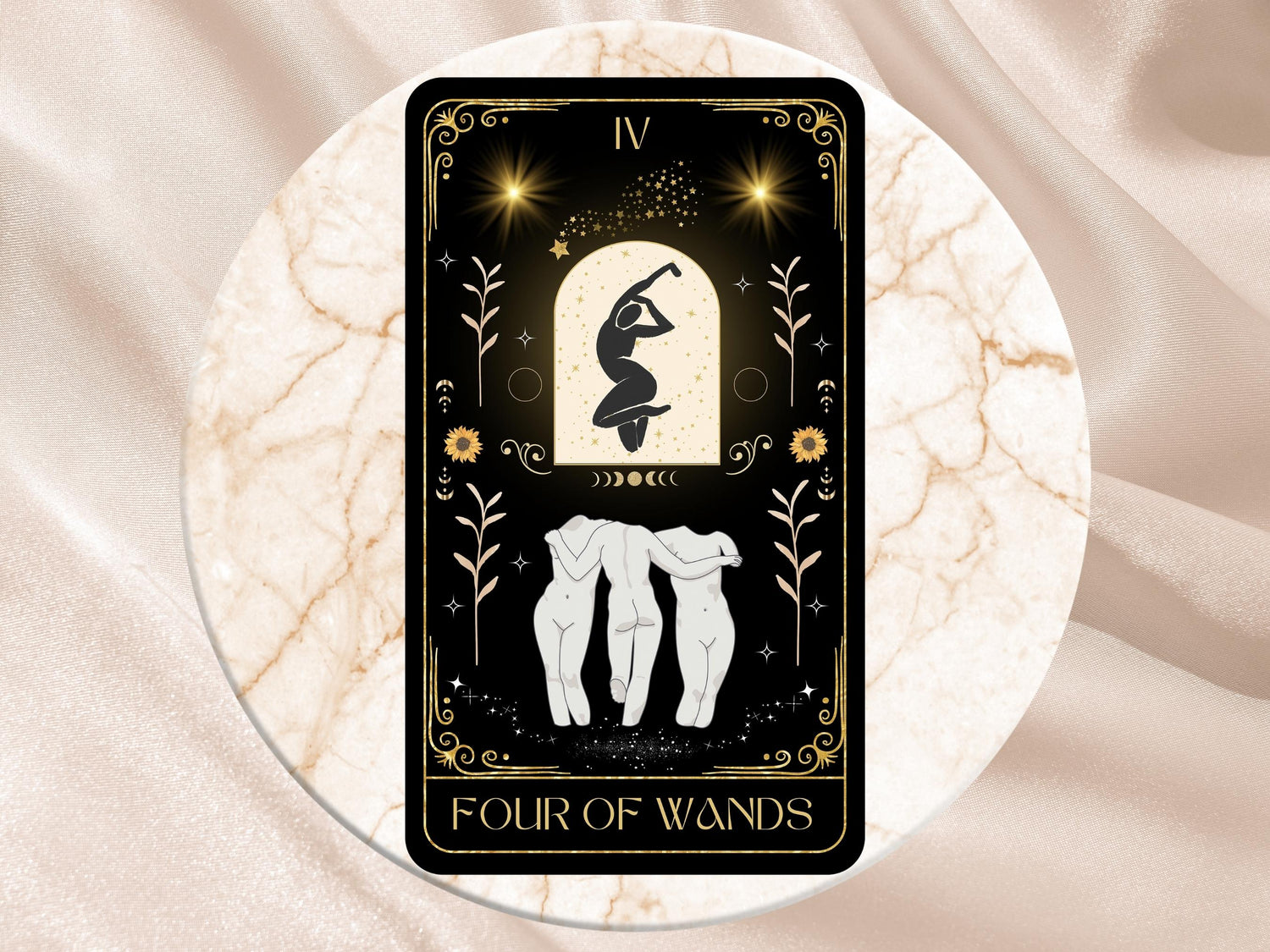 The Four of Wands card represents celebration, harmony, and a sense of homecoming. The suit of Wands is associated with passion, creativity, and ambition, making the Four of Wands a card of joy and fulfillment.