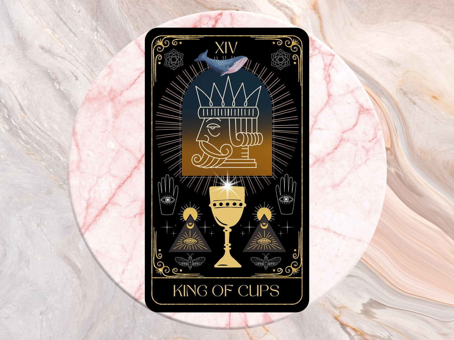 Possible examples of an upright King of Cups: Emotionally mature and diplomatic, balancing emotions with reason and logic, navigating relationships with tact and grace, trusting intuition and acting from a place of compassion and empathy.