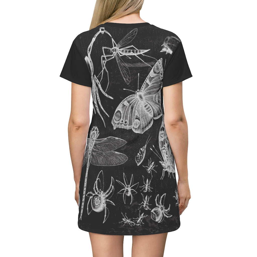 Spider Insects Moth Dress Dragonfly All Over Print T-Shirt Dress Gothic Horror Insect Lover Entomologist Dress Casual Spider Grunge Dress