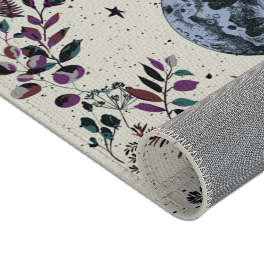 Available in 3 sizes, 24x36 inches, 36x60 inches and 48x72 inches, this durable area rug will surely make a style statement in any room. Add a celestial vibe to effortlessly match your aesthetics.