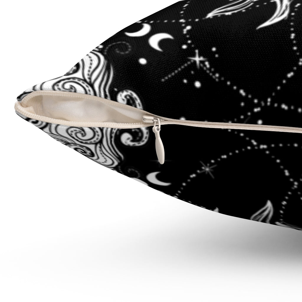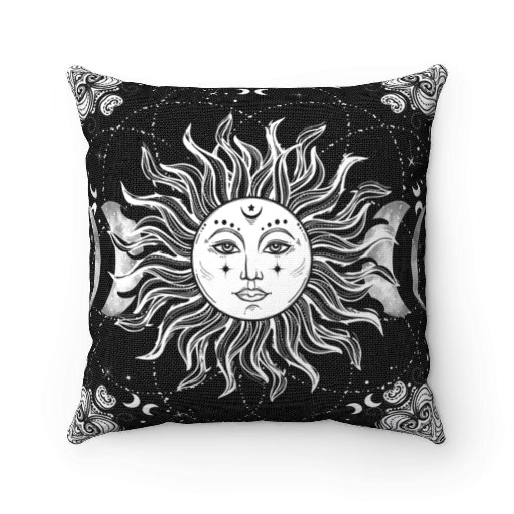 Room accents shouldn't be underrated. These beautiful indoor pillows in various sizes serve as statement pieces, creating a bohemian / gothic / magic celestial environment.